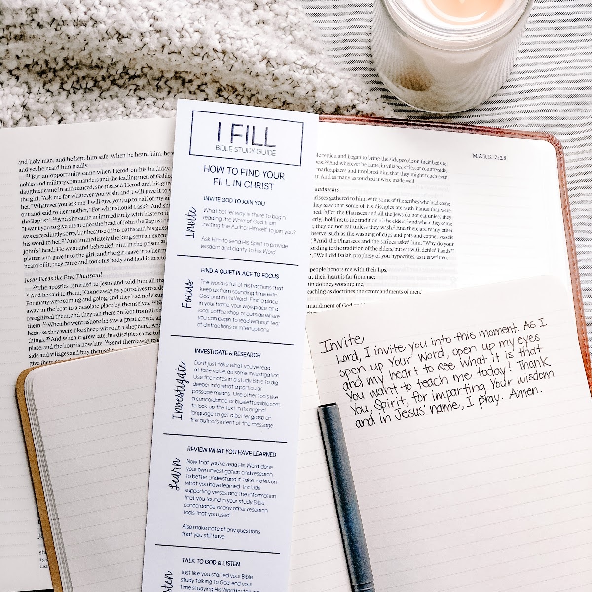 Ever struggle to know where to begin when you crack open your Bible? You’re not alone! We’ve put together a printable 5 Step Bible Study Guide + bookmark, called I FILL, to help you find your fill in Christ.