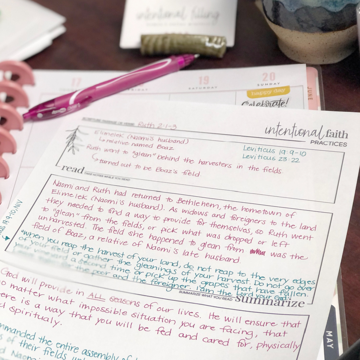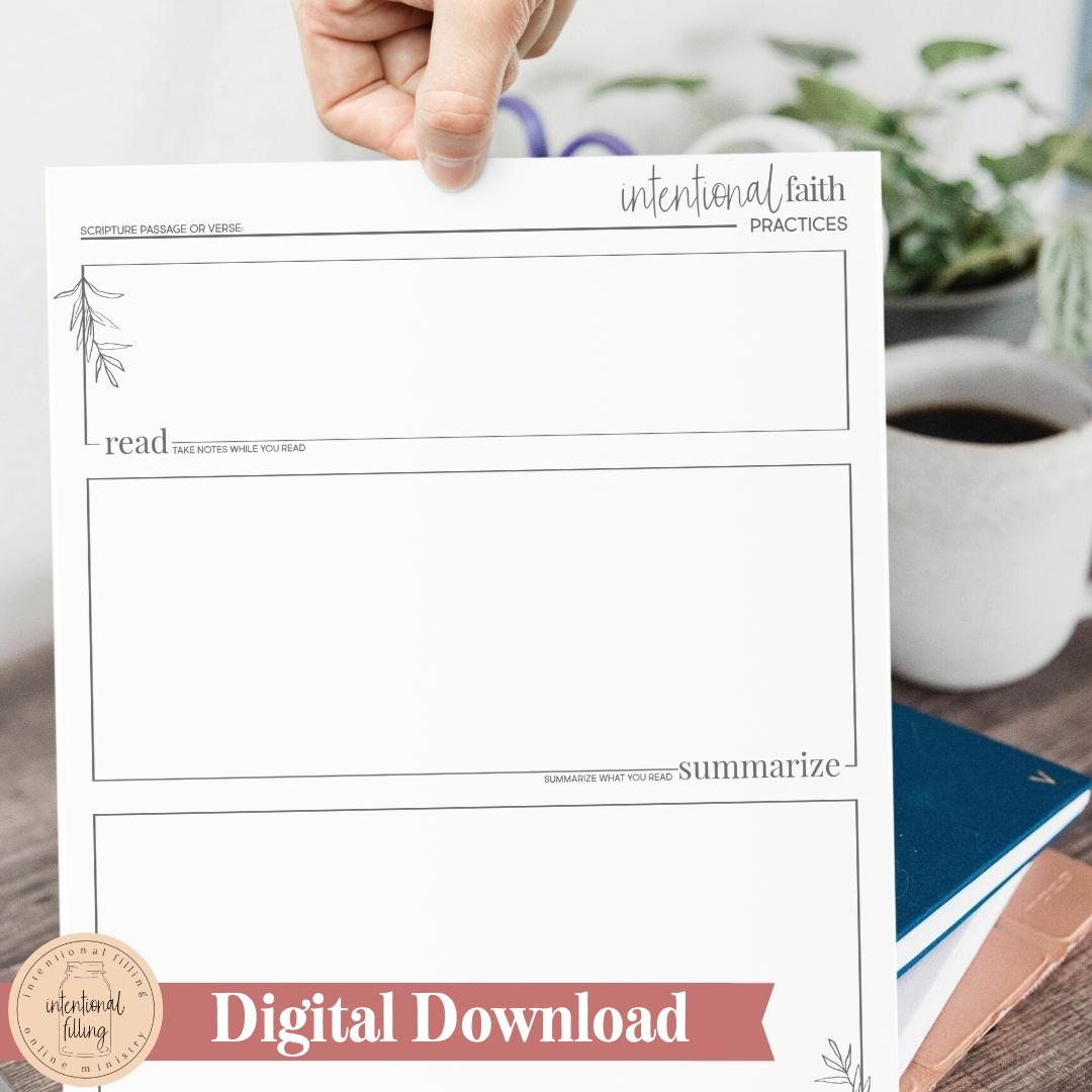 The beautiful thing about Bible study is that it doesn’t require a clear-cut path to find the answers. Use the Intentional Faith Practices Worksheet to help you get started in your exploration of God’s Word.